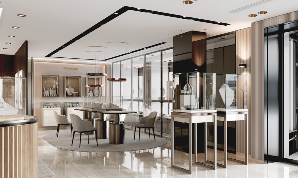 Ein ganzheitliches Gestaltungskonzept für Juwelier, Showroom und Fassade – mit klarer Markeninszenierung, hochwertiger Materialität und präzise abgestimmten Lichtstimmungen für Präsentation und Beratung.